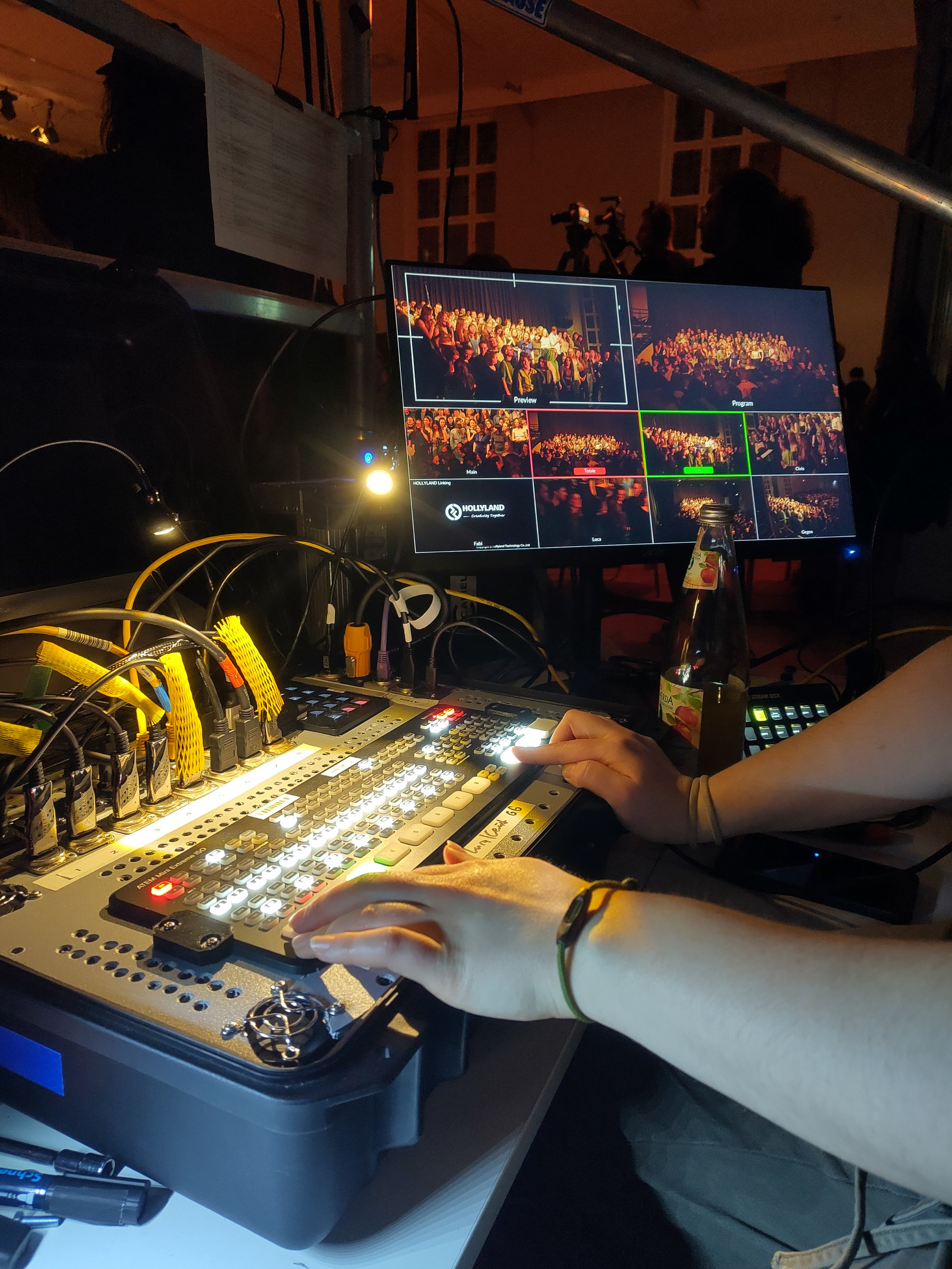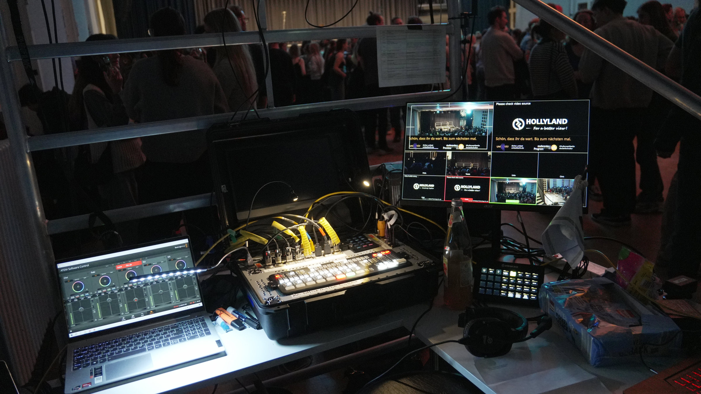Für Multicam-Livebetrieb gibt es Videomischer, an die man mehrere Kameras anschließen und zwischen den Einstellungen hin und her wechseln kann. Ich nutze dafür das Blackmagic Design ATEM Mini Extreme ISO. Es hat 8 HDMI-Eingänge, 2 Ausgänge (für Multiview oder auch bspw. Beamer) sowie diverse andere Anschlüsse. Die Ausgabe kann dabei als Stream übers Netzwerk erfolgen, per USB kann der Output auch als Webcam genutzt werden. Gleichzeitig kann sowohl das gemixte Signal als auch alle individuellen Eingangssignale auf Datenträger (USB-C) aufgezeichnet werden. Die vielen integrierten Funktionen und Effekte (Bild-in-Bild, Keyer, Transitions, Fernsteuerung und Farbkorrektur der BMPCC4K, Audio-Effekte uvm.) sorgen für maximale Flexibilität.Um Zeit beim Auf- und Abbau zu sparen und für eine bessere Funktionalität habe ich ein Custom Case für den ATEM Videomischer gebaut.